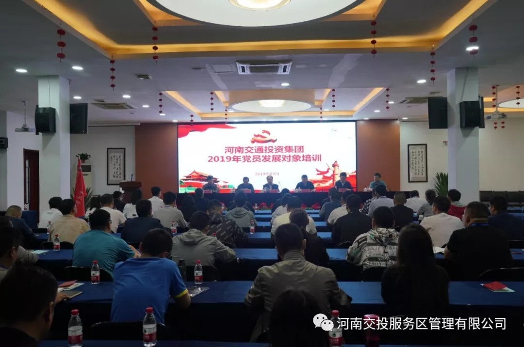 為深入學習貫徹習近平新時代中國特色社會主義思想和黨的十九大精神,進一步嚴把黨員發展“入口關”,提高黨員發展質量,9月18日,河南交通投資集團2019年黨員發展對象培訓班在鄭州南服務區順利開班,來自集團所屬各單位的62名黨員發展對象參加了此次培訓。 本次培訓班每期四天,共兩期。集團黨委工作辦公室主任張振、副主任尚海波,集團培訓中心黨支部書記李林,公司黨委書記谷源、副總經理廖軍,直屬分公司黨委書記陳東凱出席開班儀式。按照議程安排,與會人員全體起立奏唱國歌,公司谷源董事長致歡迎辭,學員代表做發言表態,集團尚海波副主任向學員代表授旗。 集團黨委工作辦公室主任張振代表集團,對培訓中心和服務區公司的周密組織與辛勤付出表示感謝,并對學員提出三點要求:一是高度重視、深刻領會發展黨員工作的重要意義;二是全面提升,力爭早日成為一名光榮的共產黨員;三是講究方法,切實保證本次教育培訓班的學習效果。