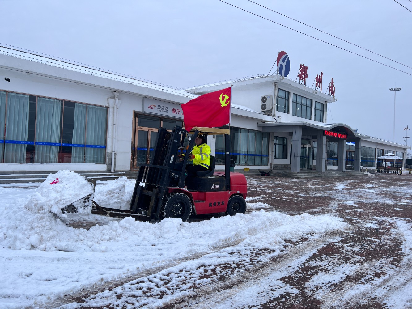 2月4日,根據天氣預警,河南進入此輪降雪最強階段,多地有中到大雪,為切實做好服務區除雪保通、服務保障工作,充分發揮黨組織戰斗堡壘作用,直屬分公司黨委按照集團及公司決策部署,組建6支黨員突擊隊,頂風冒雪、日夜兼程支援信陽、南陽、駐馬店、周口四地服務區,他們保安全、保暢通、保服務,他們亮身份、扛責任、顯擔當,以“四個強化”舉措讓黨旗在除雪保通服務工作一線高高飄揚。
