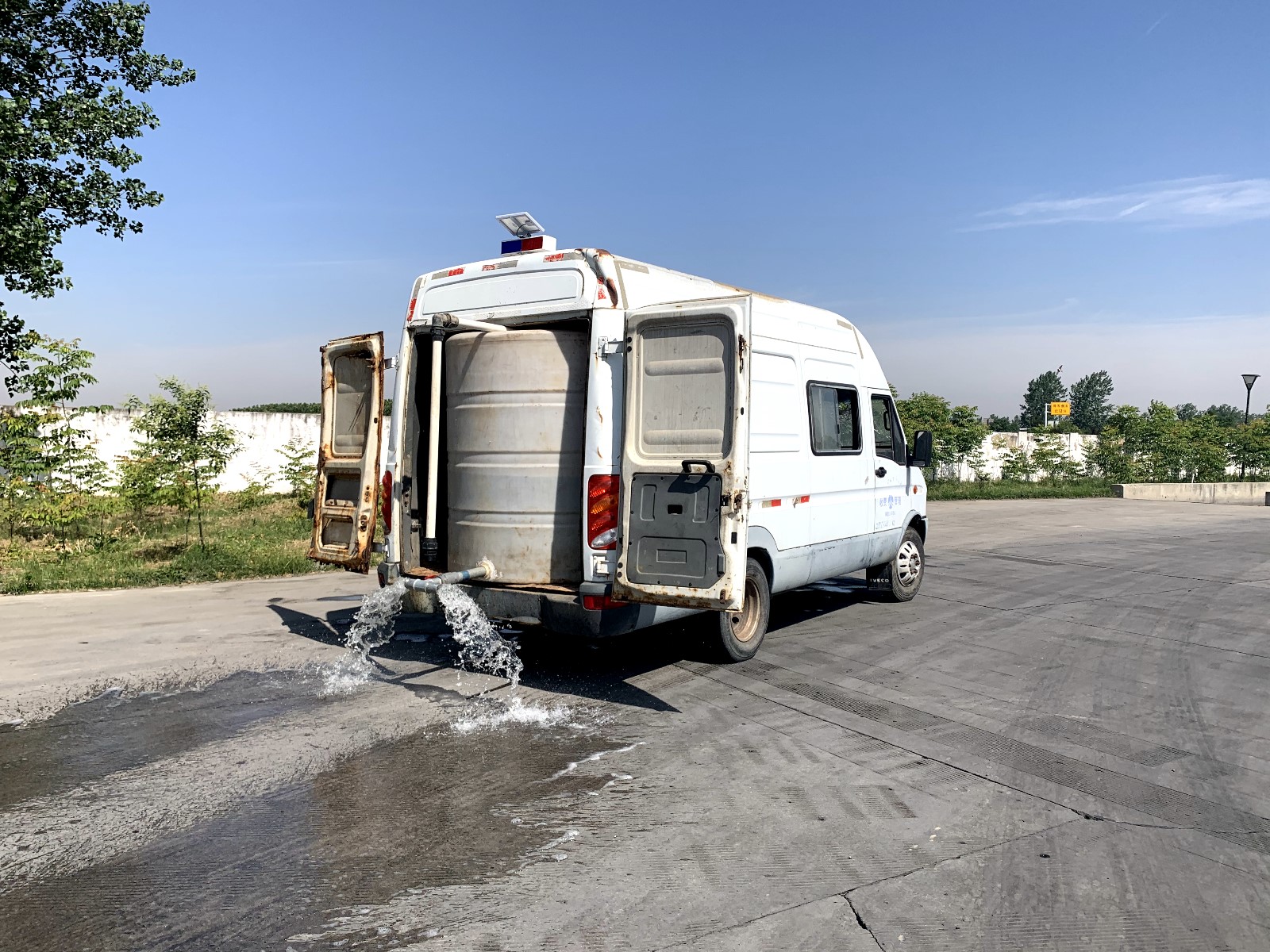 來源: 本站 發布時間: 2020-05-22為做好揚塵污染防治工作,更好地利用處理好的污水,鄢陵南服務區積極組織水電工利用現有廢舊鋼材自行制做一個簡易水箱。自制水箱利用高低壓物理原理,在車廂內橫置水桶,在水桶下擺放兩把椅子用于固定和形成高壓地水流。此項小發明省時省力,節省大量勞動力,大大的提高了工作…