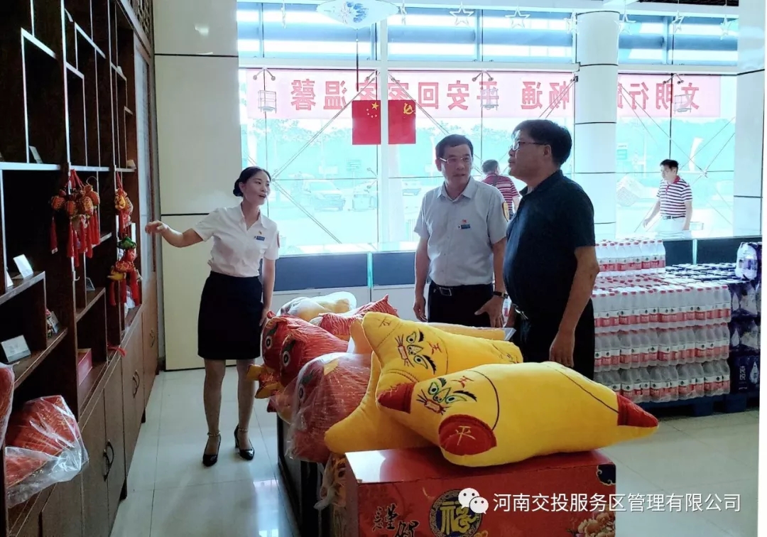 8月4日,江西省交通運輸廳調研組在副巡視員糜向榮的帶領下,到大廣高速沿線調研高速公路養護及綠化等工作,期間途徑周口東服務區。調研組一行實地查看了服務區餐廳、超市、客房等經營服務場所,深入了解了服務區管理體制、經營模式、文化品牌創建、黨建等內容,對周口東服務區環境衛生、經營管理、精神文明建設等予以高度評價,稱贊周口東服務區地域文化內容濃厚,商品品種豐富,環境衛生整潔,黨建氛圍濃厚,各類活動內容豐富,不愧為全國百佳示范服務區。 調研組與服務區工作人員交流了有關服務經營管理方面的工作經驗,勉勵周口東服務區管理工作要穩步前行,為河南交通事業、社會發展多做貢獻。