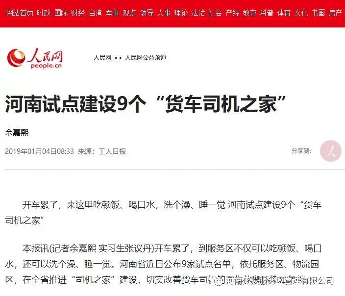 河南貨車司機的福利來了!開車到高速服務區休息,不僅可以吃頓飯,還可以洗個澡、睡一覺,并且再也不用擔心被偷油偷貨了。日前,人民網、大河網等媒體以《河南試點建設9個“貨車司機之家”》為題,報道了公司所屬安陽服務區等9地試點“司機之家”建設的新聞。河南是全國重要的交通樞紐省份。最新統計數據顯示,每年途徑河南的貨車司機人數達到52萬人次。1月4日,省總工會和省交通運輸廳聯合印發通知,在公司所屬京港澳高速安陽服務區等9個地方試點“司機之家”建設,切實改善貨車司機的工作休息環境和條件。河南是“司機之家”建設全國首批10個試點省份之一,旨在讓貨車司機行車途中能更好地“喝口熱水、吃口熱飯、洗個熱水澡、睡個安穩覺”。去年10月16日,河南省首家高速公路“司機之家”試點在京港澳高速安陽服務區已經投入運營。安陽服務區“司機之家”總面積252平方米,可為貨車司機提供吃喝洗睡買等各式服務同時,還可對貨車停車區域進行24小時監控和安保值班,嚴防偷油偷貨行為,為貨車司機出行提供安全保障。這里有干凈整潔的司機休息室,全天候24小時都有單點小吃,還配備有多臺洗衣機。“這里整得很不賴,為我們想得很周到?!闭诜諈^休息的貨車司機李先生說,以前在傳統物流園區,想睡個安穩覺、吃口熱飯都成問題。目前,河南已出臺了首個“司機之家”建設基本標準,在基本功能、設施設置和配置、安保、選址與布局、設計與建設、運營管理等7個方面做出詳細規定,同時鼓勵有條件的“司機之家”為貨車司機提供微波爐、愛心藥箱、手機充電、免費WiFi,便利店、加油站、汽車維修等多樣化、全天候服務。試點建設以來,針對省交通運輸廳和省總工會對“司機之家”建設試點工作的安排部署,交投服務區公司邊建設、邊使用、邊完善,力爭打造功能實用、布局合理、經濟實惠、便捷舒適的“司機之家”,形成可持續發展的模式。