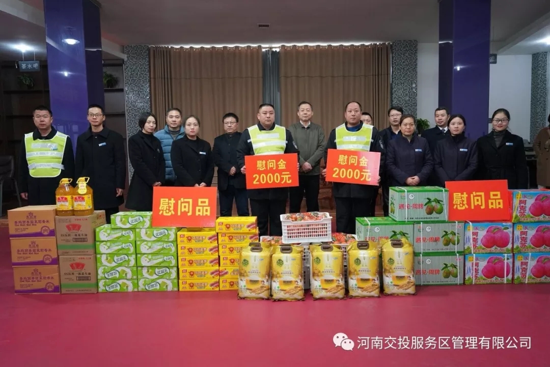 1月30日,河南交通投資集團(tuán)黨委副書記、工會(huì)主席劉院生、人力資源部部長(zhǎng)張國(guó)選,在公司總經(jīng)理任衛(wèi)彬、直屬分公司總經(jīng)理李平、黨委書記陳東凱等領(lǐng)導(dǎo)的陪同下到鄭州北服務(wù)區(qū)開(kāi)展春節(jié)節(jié)前慰問(wèn)工作。 劉院生副書記、張國(guó)選部長(zhǎng)先后到服務(wù)區(qū)廣場(chǎng)、餐廳、超市,對(duì)堅(jiān)守一線的員工進(jìn)行慰問(wèn),送上節(jié)日的祝福和問(wèn)候。 慰問(wèn)中,劉院生副書記、張國(guó)選部長(zhǎng)與服務(wù)區(qū)兩名特困職工及員工代表進(jìn)行了親切交談,并帶來(lái)了慰問(wèn)金和慰問(wèn)品,劉院生副書記叮囑服務(wù)區(qū)管理人員,在做好春運(yùn)保障工作的同時(shí),要時(shí)刻把員工的生活放在心間,確保員工度過(guò)一個(gè)喜慶、祥和的節(jié)日。