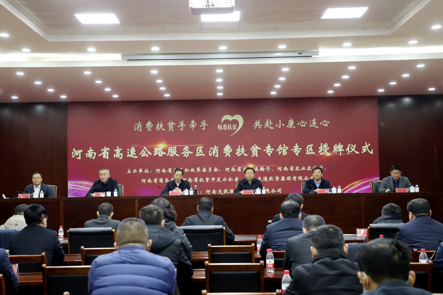 為深入貫徹落實黨的十九屆五中全會精神,繼續做好河南省高速公路服務區消費扶貧工作,12月22日,由省發改委、交通運輸廳、農業農村廳、商務廳、扶貧辦,河南交通投資集團聯合主辦,公司承辦的“河南省高速公路服務區消費扶貧專館專區授牌儀式”在鄭州北服務區隆重舉行。