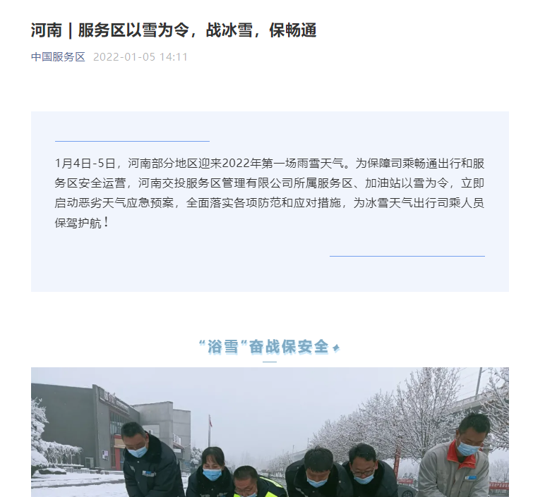 中國服務(wù)區(qū):河南 | 服務(wù)區(qū)以雪為令,戰(zhàn)冰雪,保暢通