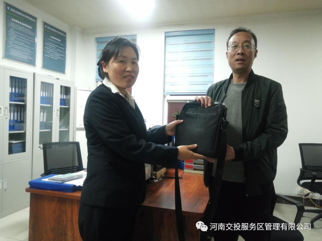 2019-11-08 作者:11月8日下午,澠池服務區北區公共衛生間當班員工郭紅軍在打掃衛生時撿到一棕色男士休閑包,但衛生間內已無顧客,他第一時間將包及時上交至服務區辦公室。經共同查看,包內有錢包、證件、多張卡片、若干現金等。經多方努力,最終輾轉與失主取得聯系,失主委托朋友連夜趕回澠池服…