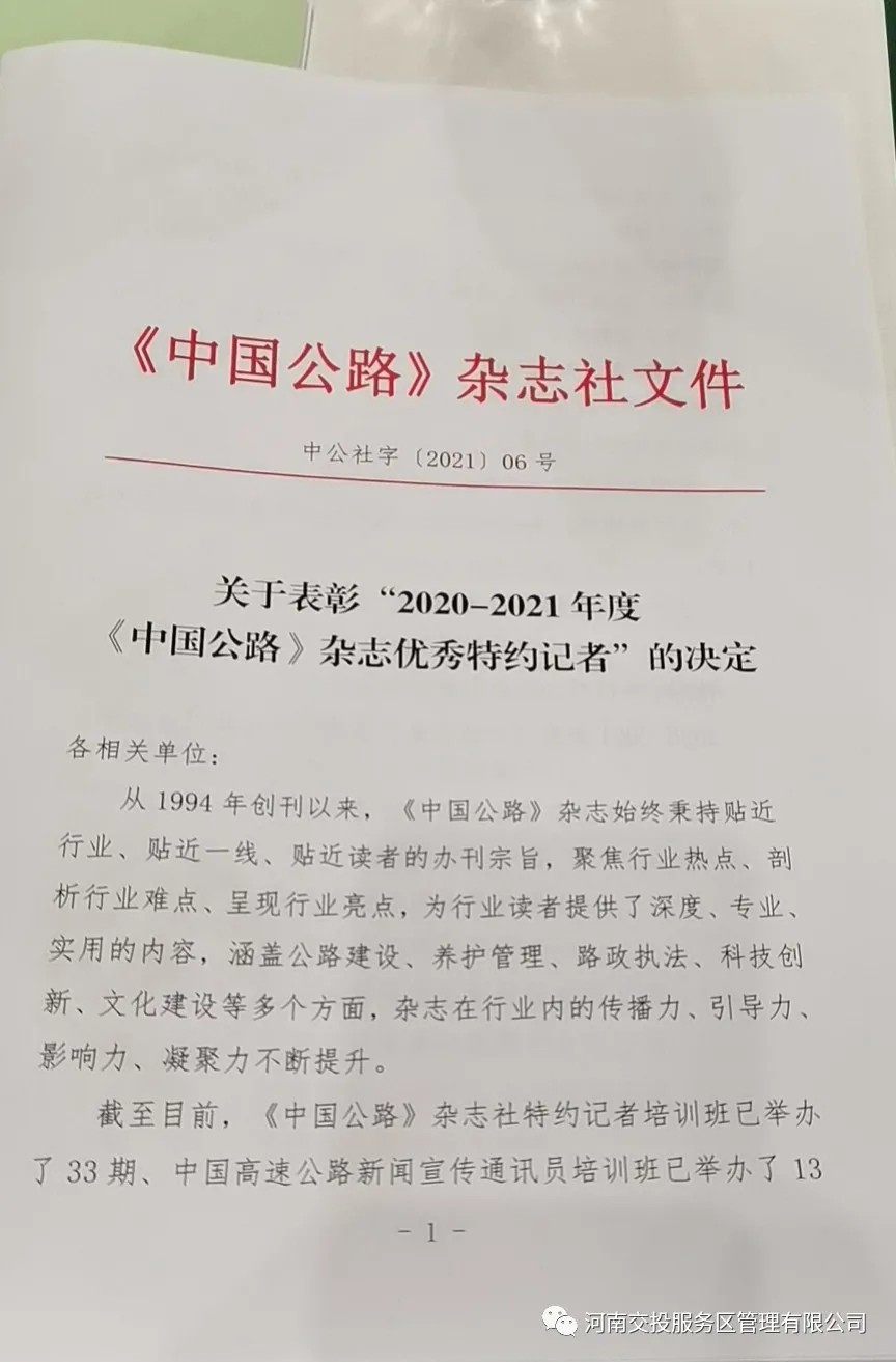 公司員工獲評“《中國公路》雜志2020—2021年度優(yōu)秀特約記者”