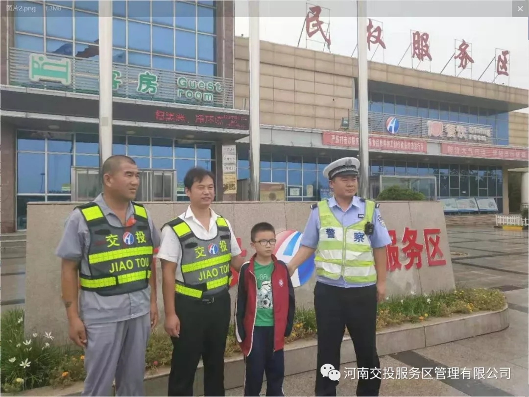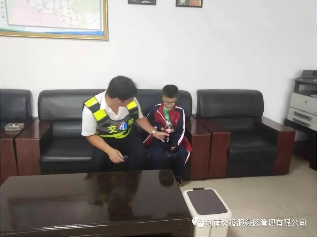 8月12日上午,民權服務區值班經理在日常巡查過程中,發現一名身穿校服的孩子在服務區廣場邊哭泣邊尋找父母。 值班經理見狀立即前去詢問,得知孩子和其父母去鄭州游玩,歸來途徑民權服務區去衛生間時走散。值班經理馬上向服務區經理匯報,經理聞訊當即將孩子帶至值班室休息,并拿來飲料、零食安撫孩子情緒。通過耐心溝通,孩子情緒慢慢平復,并回憶起了家長的電話。工作人員立即與其父母取得聯系,孩子的父母此時也心急如焚,得知孩子已被服務區工作人員妥善安置,激動萬分,十分感謝服務區的熱心幫助。此時孩子父母已經回到商丘,為了讓孩子第一時間與父母團聚,民權服務區經理王德波立即聯系值班高速交警,請他們協助幫忙把孩子送回父母身邊。 中午時分,服務區接到孩子父母和高速交警領導反饋電話,告知孩子已經安全和父母團聚,對服務區熱心幫助表示感謝。