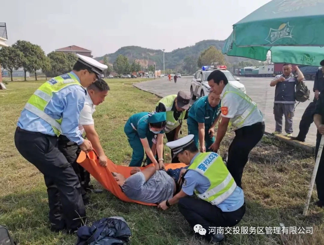 9月27日上午10時25分,鞏義服務區工作人員在巡查時,發現一位50多歲的男士暈倒在北區廣場綠化帶內,出現嘔吐、休克等癥狀。