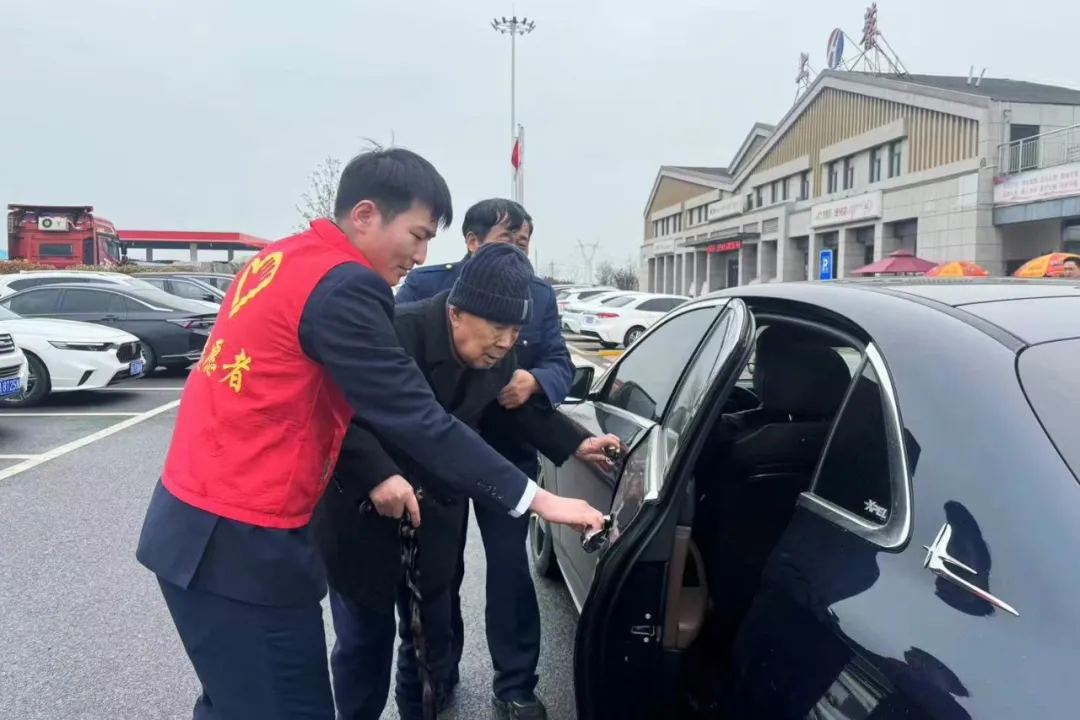 4月4日,上蔡服務區員工攙扶90歲行動不便老人到衛生間后并扶送至車內,司乘對服務區贊不絕口