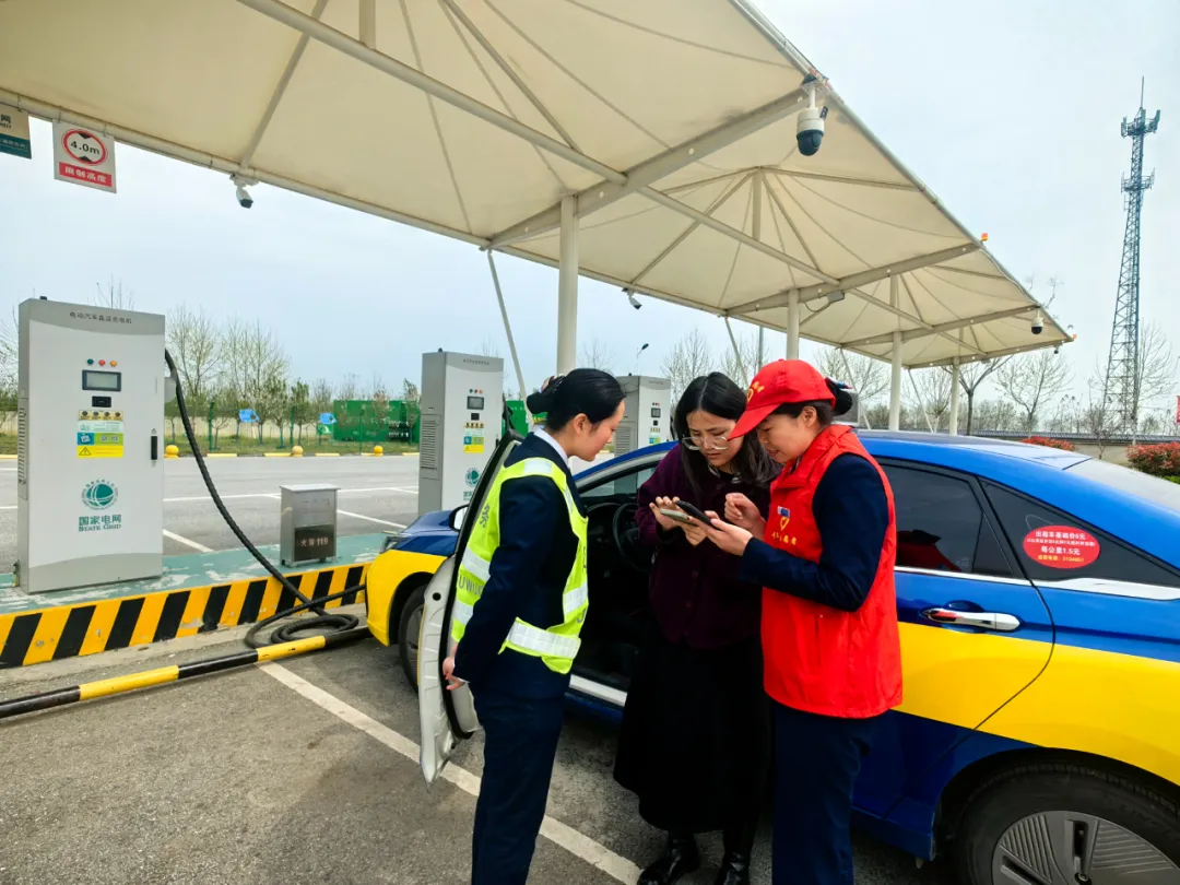 4月4日,孟津服務區員工為司乘電車充足電量,解決旅途電量焦慮獲好評