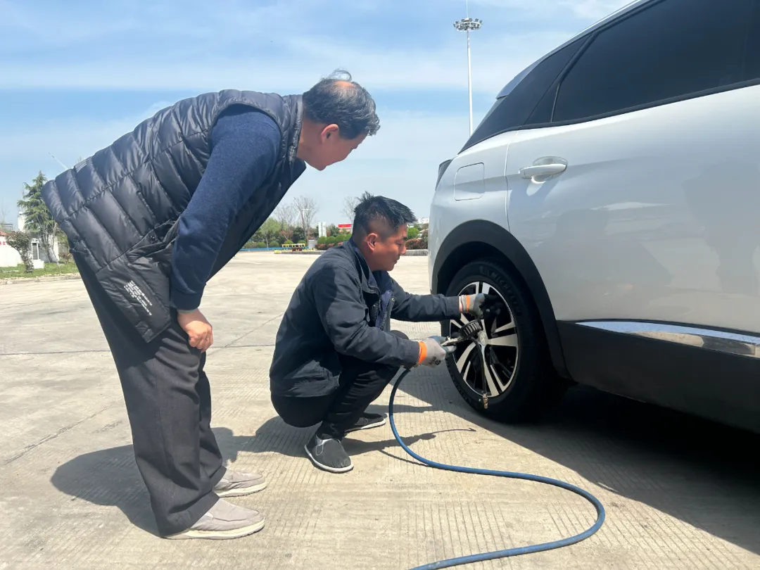 4月5日,永城南服務區汽修廠免費為司乘充氣和檢測車輛