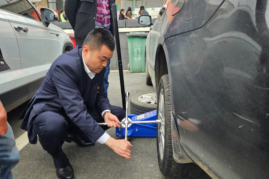 4月4日,黃帝宮服務區暖心為司乘故障輪胎進行更換