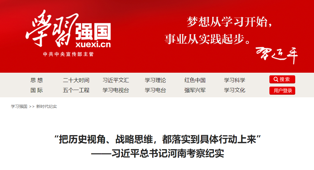 “把歷史視角、戰略思維,都落實到具體行動上來” ——習近平總書記河南考察紀實
